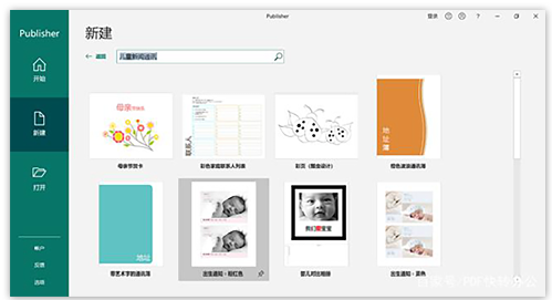 您可以使用内置模板创建专业文档,例如新闻通讯,明信片,传单,邀请,小册子等。