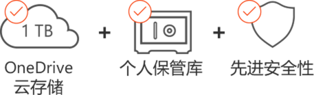 1 TB存储空间,可以将所有的文件夹自动备份到OneDrive,且OneDrive个人保管库提供双重身份验证放心存放最重要文件。